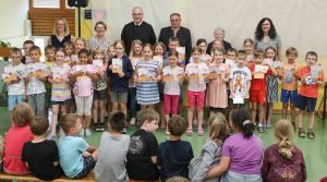 Die Schülerinnen und Schüler der 2. Klasse Volksschule besuchten die Bücherei, um den Bibliotheksführerscheim zu absolvieren. Sie erfuhren viel über das Wesen einer Bücherei und die bibliothekarische Arbeit. Entlehngebühren, Rückgabefrist und die systematische Ordnung der verschiedenen Medien waren Themen, die behandelt wurden. Mit Stolz und Freude nahmen alle dann bei einem kleinen Festakt in der Aula der Volksschule ihre Urkunden und Bibliotheksführerscheinausweise in Empfang. Überreicht wurden sie von Bürgermeister Richard Hogl und Pater Michael Fritz OSB.