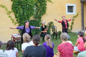 Mucks(fleder)mäuschenstill lauschten die Zuhörer den Fledermausgeschichten aus aller Welt, die Ameli Pauli, Saga Susa und Jutta Goldgruber mit musikalischer Untermalung erzählten.Nach einem Picknick auf der Pfarrwiese berichtete Willi Müllebner von der Fledermausstation Österreich dann viel Interessantes über diese faszinierende Spezies. Er zeigte auch beeindruckende Bilder und Videos über die Pflege von verletzten Tieren und deren Freilassung nach der Genesung.